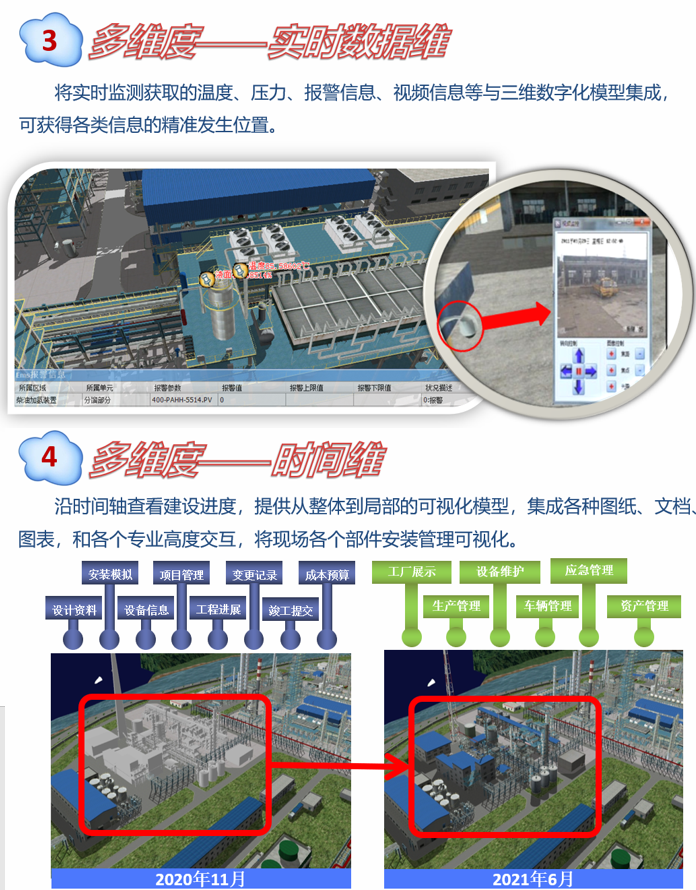 一体化:4D工程施工管理、竣工移交、资产管理、维修维护、生产监控、仿真展示、应急管理